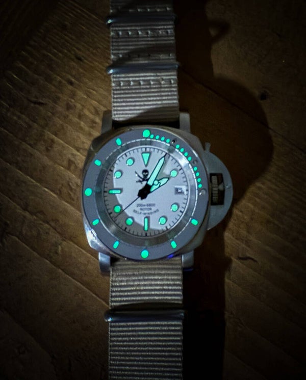 42mm 316l Steel case, Cam action crown, Sapphire crystal.